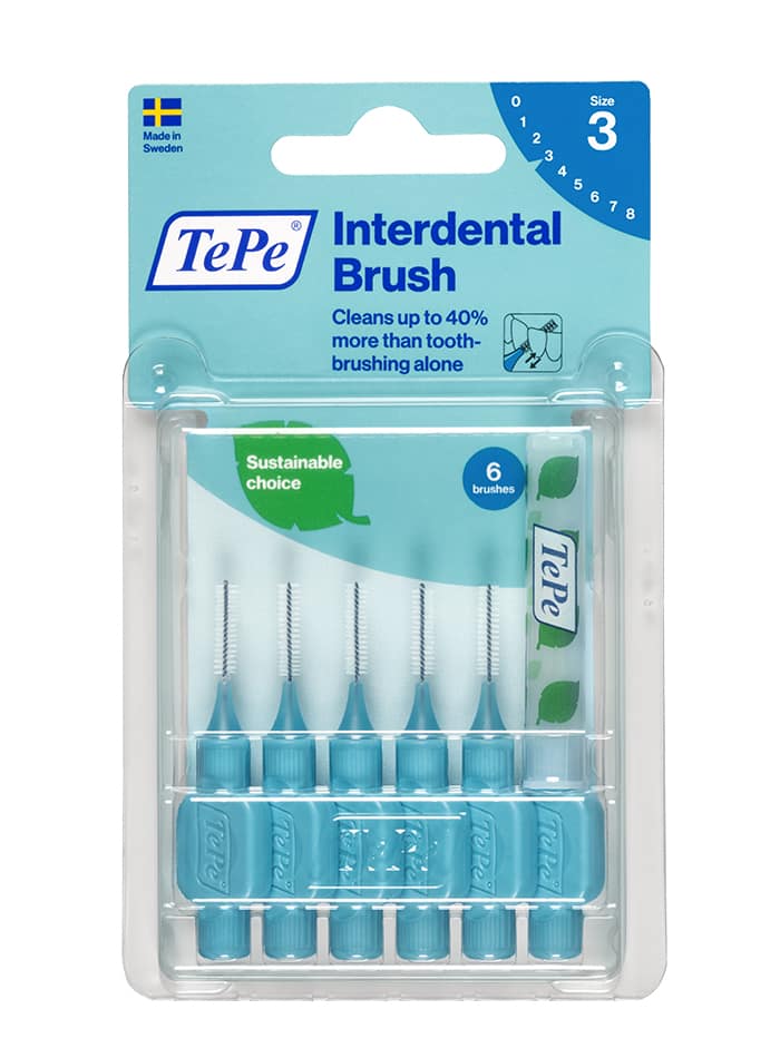 Les brossettes interdentaires TePe sont conçues pour nettoyer les espaces entre les dents inaccessibles avec une brosse à dents classique. En usage quotidien, elles permettent de garder des gencives et des dents saines. La brossette interdentaire peut être utilisée pour nettoyer les espaces entre les dents, les implants, les couronnes et les bridges. Elle est également adaptée au nettoyage des braquettes et du fil en orthodontie. La brossette interdentaire TePe Originale est disponible en 9 tailles codées par couleur afin de couvrir entièrement les variétés d’espaces interdentaires – tailles ISO 0-8. Les brossettes interdentaires sont développées en collaboration avec des experts dentaires pour en garantir la qualité optimale. Son utilisation quotidienne peut aider à éliminer jusqu’à 40 % de plaque supplémentaire à un simple le brossage des dents. L’élimination efficace de la plaque dentaire prévient l’inflammation des gencives, les caries et la mauvaise haleine. En remplaçant les matières premières fossiles par des matières végétales certifiées via l’approche du bilan de masse, nous avons réduit l’empreinte carbone de la brossette interdentaire d’environ 80 %, sans compromettre la qualité, l’efficacité ou la conception du dispositif.