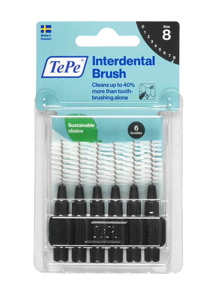 Les brossettes interdentaires TePe sont conçues pour nettoyer les espaces entre les dents inaccessibles avec une brosse à dents classique. En usage quotidien, elles permettent de garder des gencives et des dents saines. La brossette interdentaire peut être utilisée pour nettoyer les espaces entre les dents, les implants, les couronnes et les bridges. Elle est également adaptée au nettoyage des braquettes et du fil en orthodontie. La brossette interdentaire TePe Originale est disponible en 9 tailles codées par couleur afin de couvrir entièrement les variétés d’espaces interdentaires – tailles ISO 0-8. Les brossettes interdentaires sont développées en collaboration avec des experts dentaires pour en garantir la qualité optimale. Son utilisation quotidienne peut aider à éliminer jusqu’à 40 % de plaque supplémentaire à un simple le brossage des dents. L’élimination efficace de la plaque dentaire prévient l’inflammation des gencives, les caries et la mauvaise haleine. En remplaçant les matières premières fossiles par des matières végétales certifiées via l’approche du bilan de masse, nous avons réduit l’empreinte carbone de la brossette interdentaire d’environ 80 %, sans compromettre la qualité, l’efficacité ou la conception du dispositif.