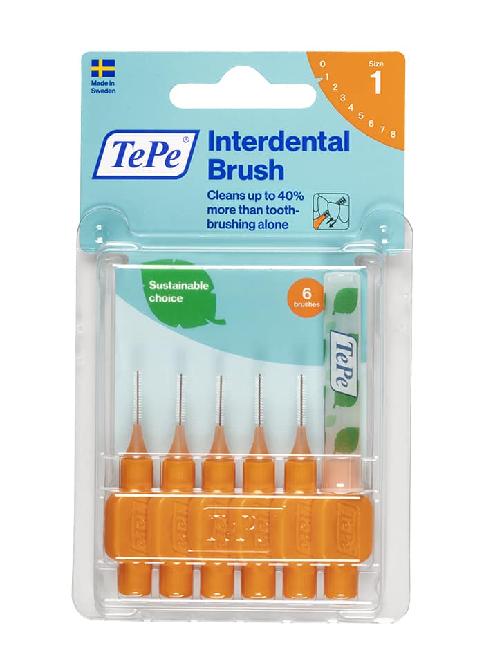 Les brossettes interdentaires TePe sont conçues pour nettoyer les espaces entre les dents inaccessibles avec une brosse à dents classique. En usage quotidien, elles permettent de garder des gencives et des dents saines. La brossette interdentaire peut être utilisée pour nettoyer les espaces entre les dents, les implants, les couronnes et les bridges. Elle est également adaptée au nettoyage des braquettes et du fil en orthodontie. La brossette interdentaire TePe Originale est disponible en 9 tailles codées par couleur afin de couvrir entièrement les variétés d’espaces interdentaires – tailles ISO 0-8. Les brossettes interdentaires sont développées en collaboration avec des experts dentaires pour en garantir la qualité optimale. Son utilisation quotidienne peut aider à éliminer jusqu’à 40 % de plaque supplémentaire à un simple le brossage des dents. L’élimination efficace de la plaque dentaire prévient l’inflammation des gencives, les caries et la mauvaise haleine. En remplaçant les matières premières fossiles par des matières végétales certifiées via l’approche du bilan de masse, nous avons réduit l’empreinte carbone de la brossette interdentaire d’environ 80 %, sans compromettre la qualité, l’efficacité ou la conception du dispositif.