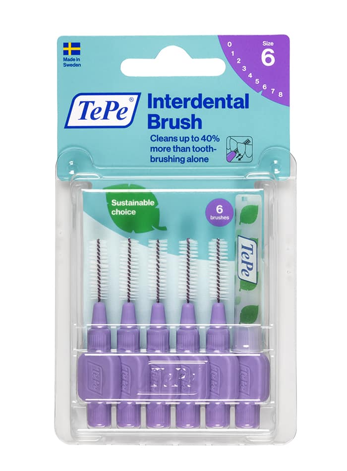 Les brossettes interdentaires TePe sont conçues pour nettoyer les espaces entre les dents inaccessibles avec une brosse à dents classique. En usage quotidien, elles permettent de garder des gencives et des dents saines. La brossette interdentaire peut être utilisée pour nettoyer les espaces entre les dents, les implants, les couronnes et les bridges. Elle est également adaptée au nettoyage des braquettes et du fil en orthodontie. La brossette interdentaire TePe Originale est disponible en 9 tailles codées par couleur afin de couvrir entièrement les variétés d’espaces interdentaires – tailles ISO 0-8. Les brossettes interdentaires sont développées en collaboration avec des experts dentaires pour en garantir la qualité optimale. Son utilisation quotidienne peut aider à éliminer jusqu’à 40 % de plaque supplémentaire à un simple le brossage des dents. L’élimination efficace de la plaque dentaire prévient l’inflammation des gencives, les caries et la mauvaise haleine. En remplaçant les matières premières fossiles par des matières végétales certifiées via l’approche du bilan de masse, nous avons réduit l’empreinte carbone de la brossette interdentaire d’environ 80 %, sans compromettre la qualité, l’efficacité ou la conception du dispositif.